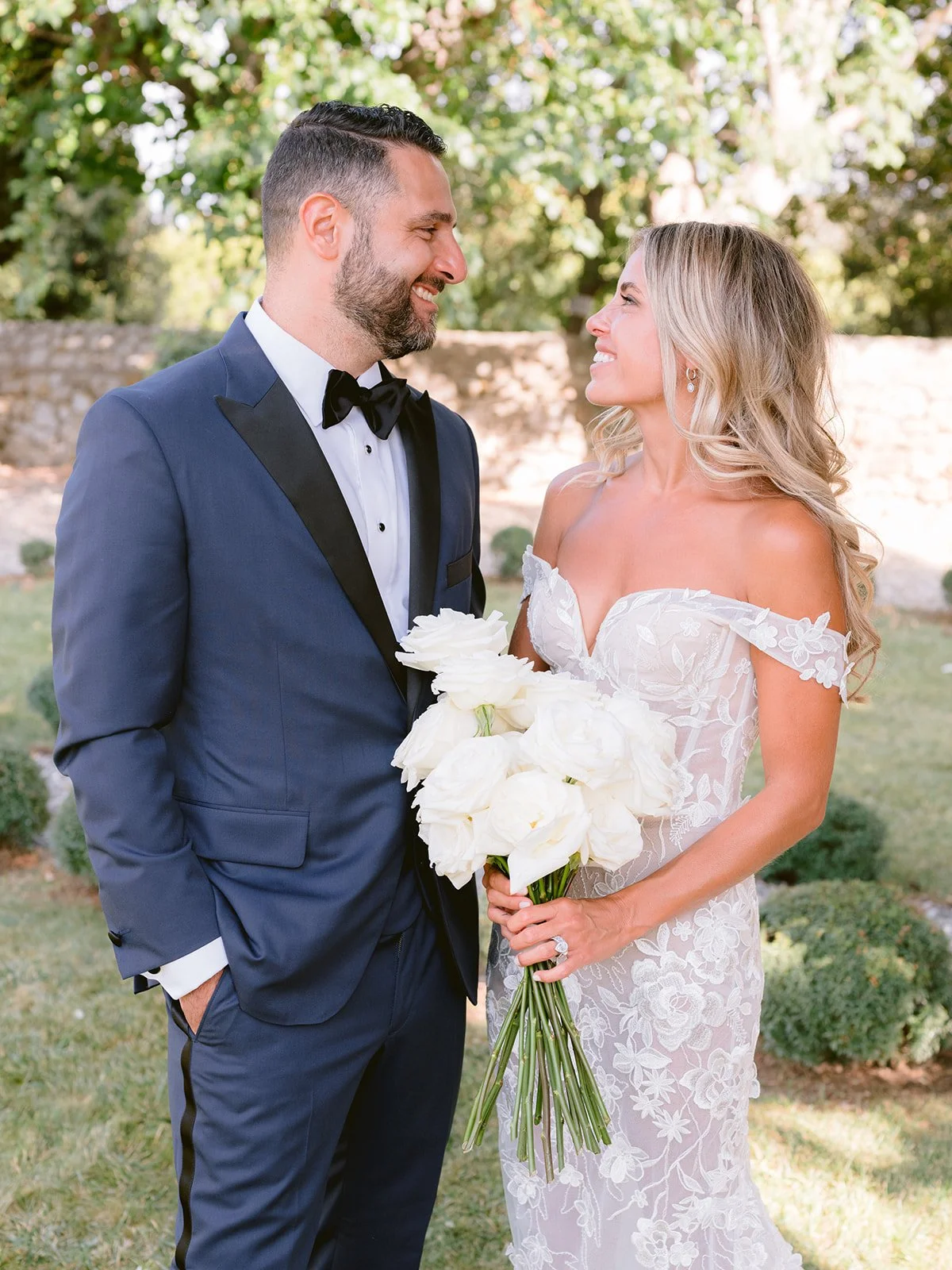 C'est au Castello di Vicarello, hissé en haut d’une colline et caché au milieu des champs de vignes, que Paris et Anthony ont fait le choix de s’unir. Ce cadre incarne toute l’essence de la Toscane ensoleillée et abondante. Nous avons tout de suite été touchés par le charme du lieu.