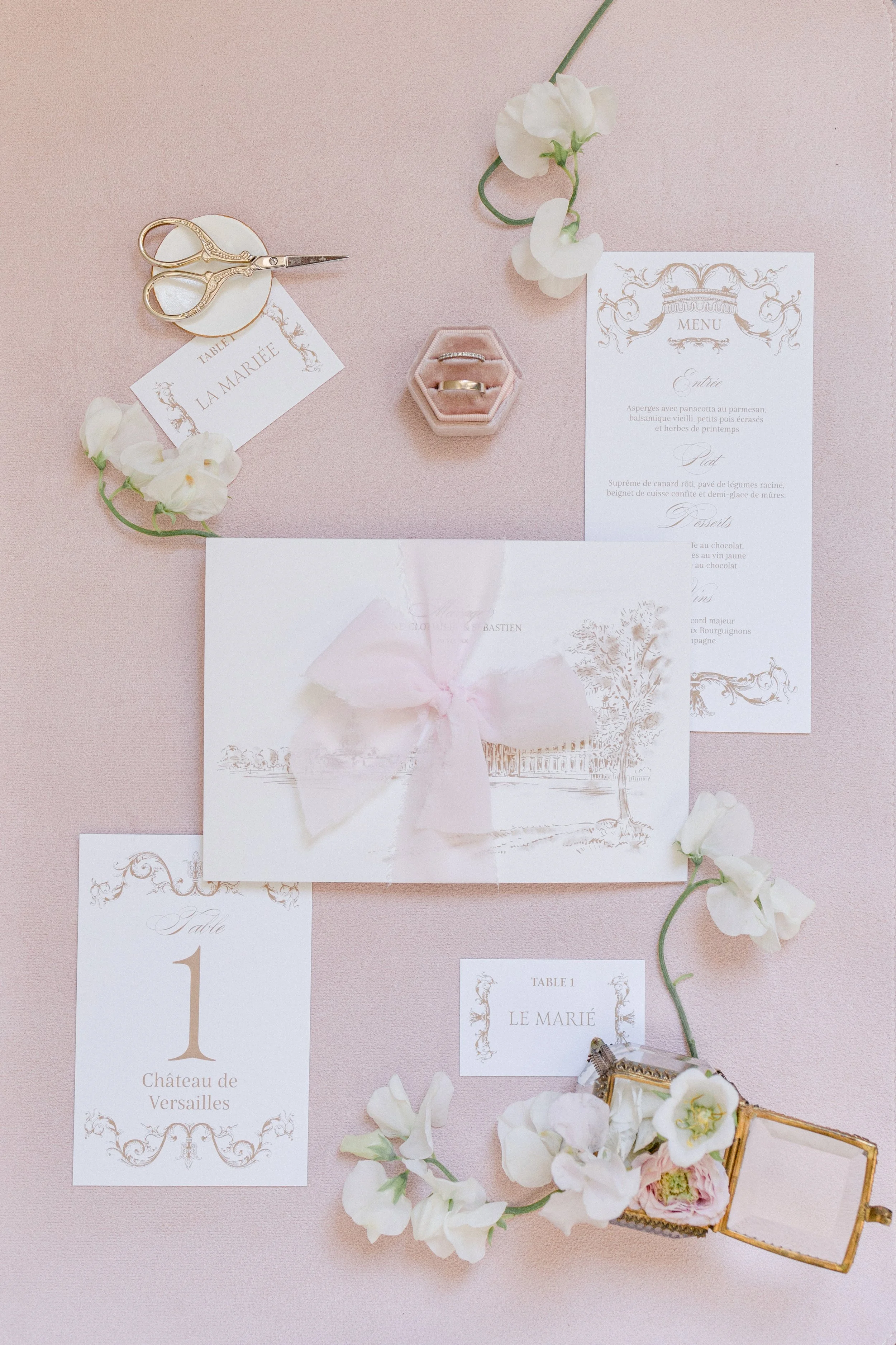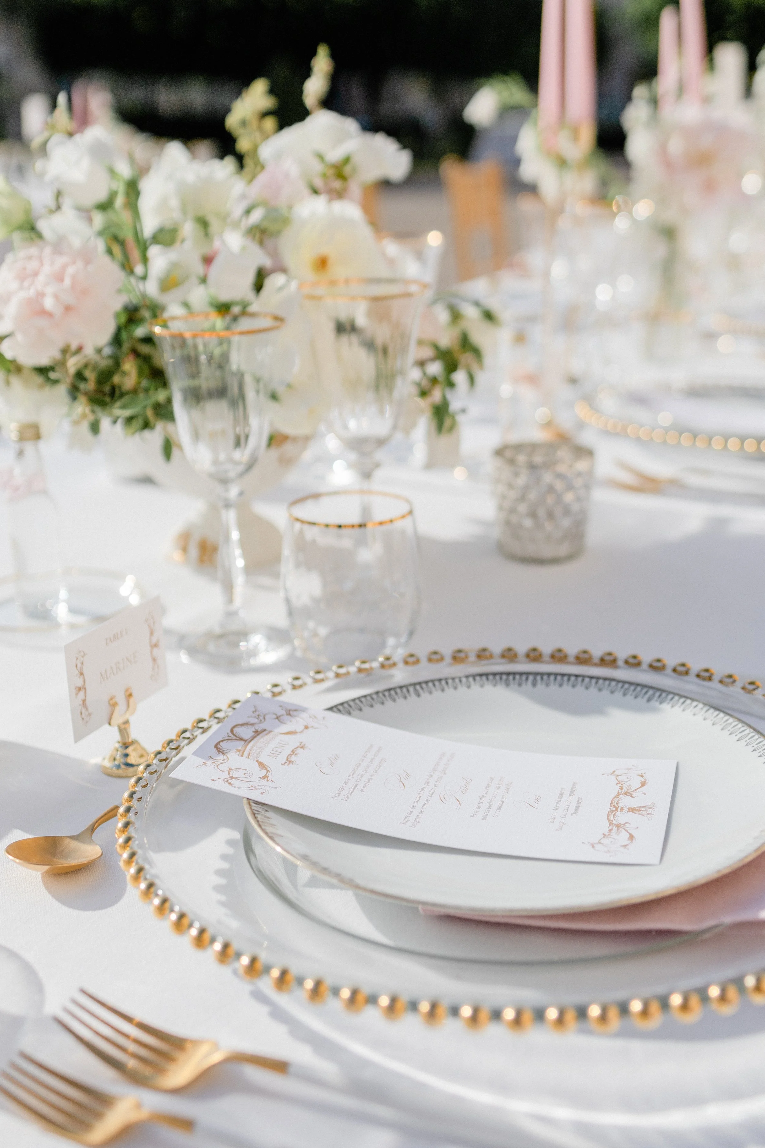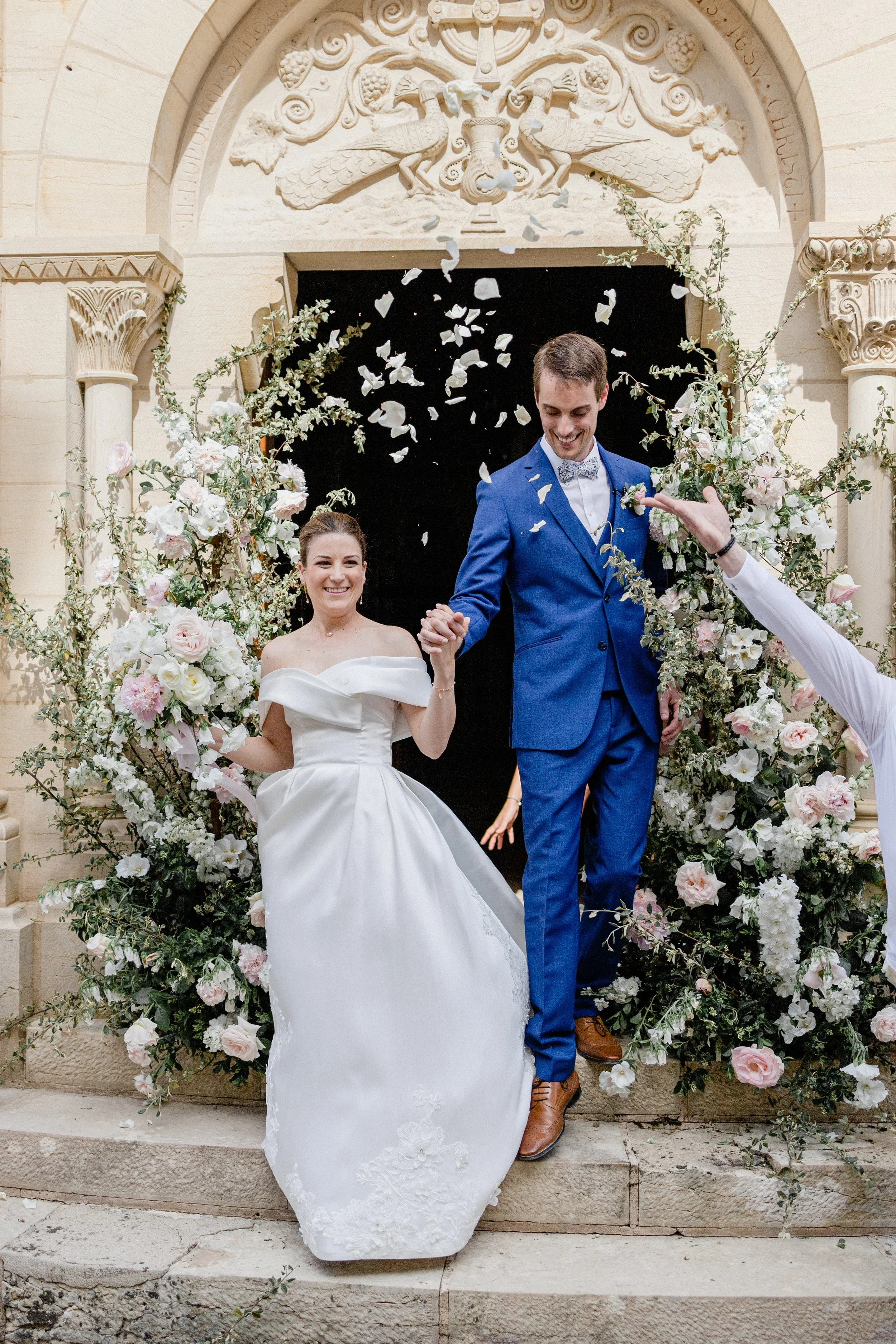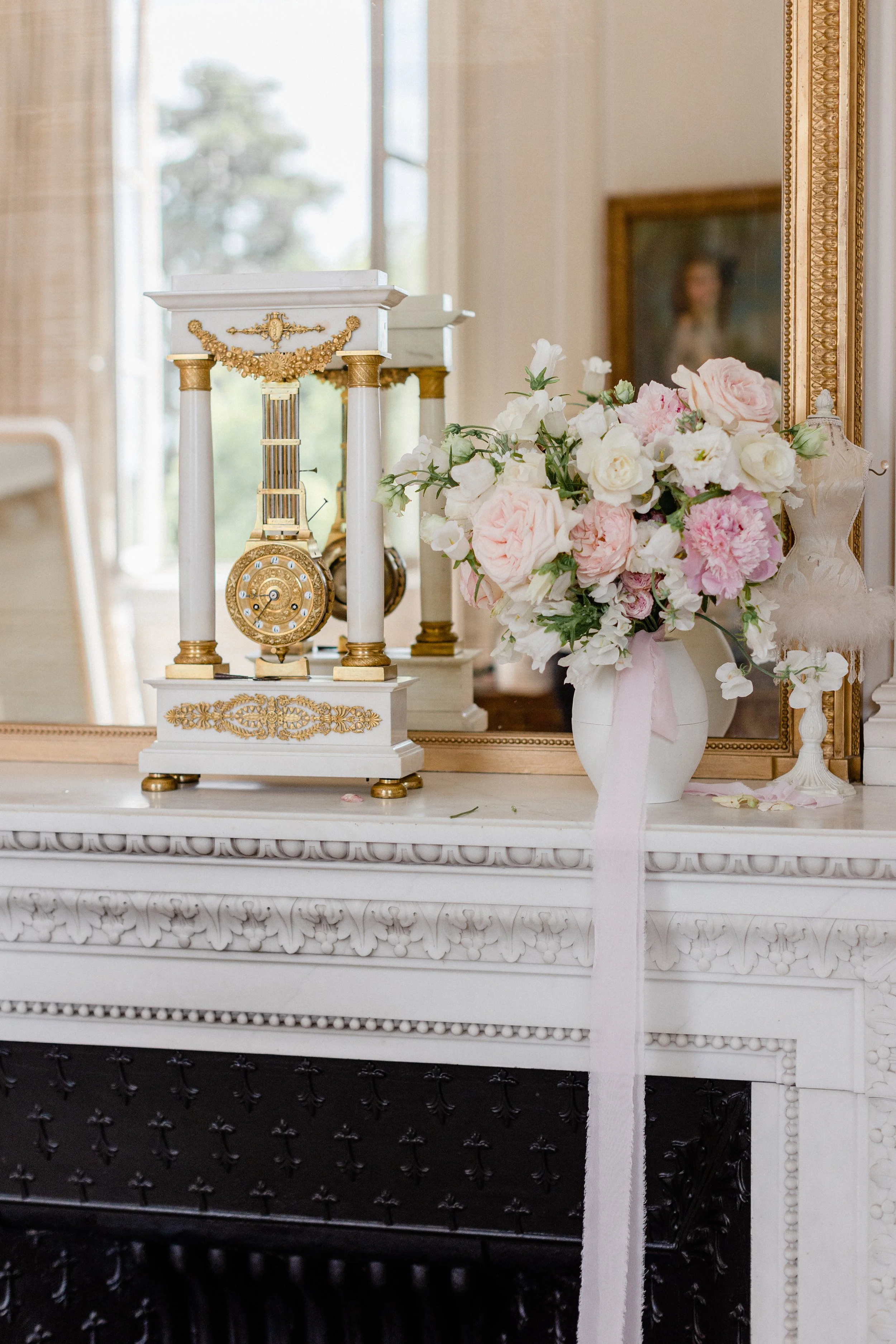 Anne-Clotilde and Sébastien choose to say "I do" in a charming little chapel adjacent to the splendid Château de Varennes, surrounded by its lavender fields in the heart of Burgundy. We embraced softer tones with pale pink and white to keep the decor clean.